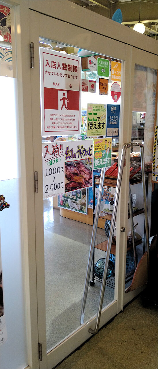 道の駅の敷地内のあるお店で、1階は魚屋さん・なので帰りに魚介類などを買って帰ることもできます。