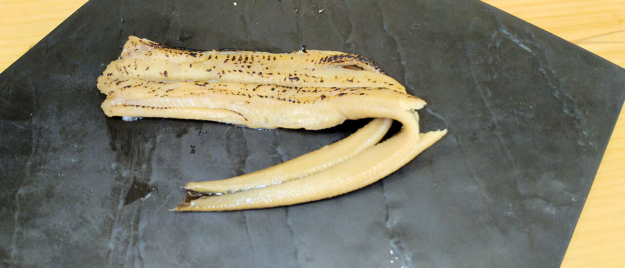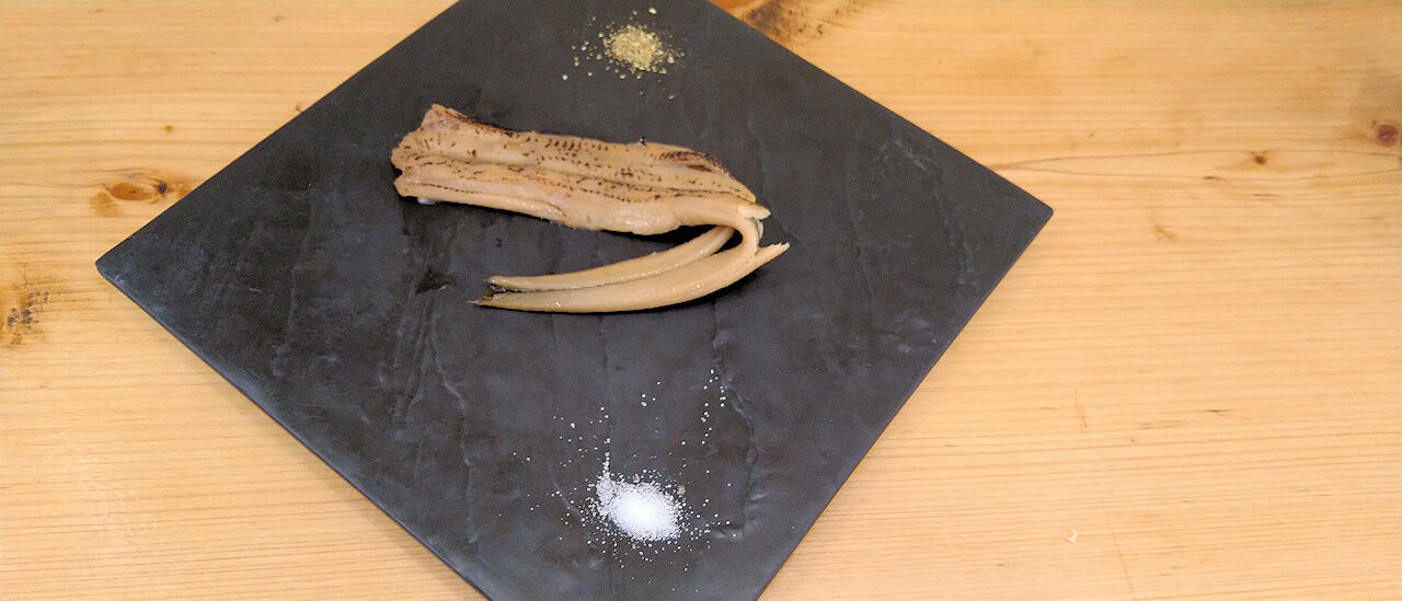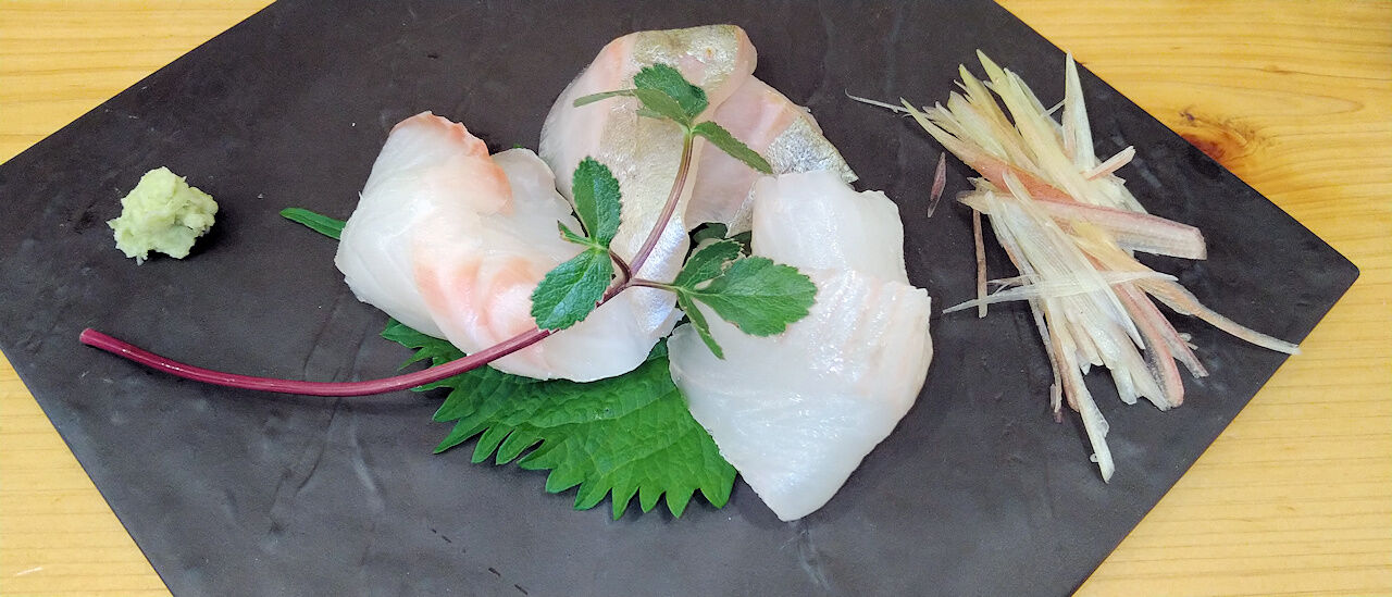 おすすめのメニューは手書きで書かれています。刺身の種類の多さは日本海に近いこの地域ならでは。コリコリした食感、とにかくバイ貝の刺身ならではの魅力がしっかり出ています。