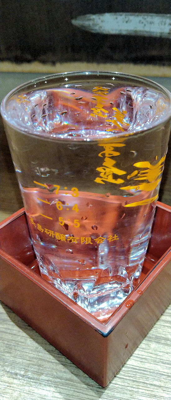 蔵元限定販売というかめ壷仕込みの古酒です。これは当然ロックで味わうに限りますね。