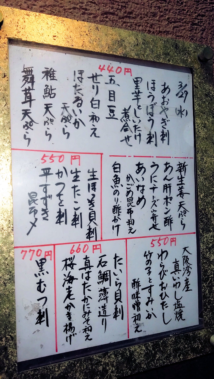 ここ最近は日本酒か焼酎というパターンだったので、今回は日本酒。刺身系を中心に徳多和良のアテは日本酒が一番合っているんだ貫と改めて感じました。