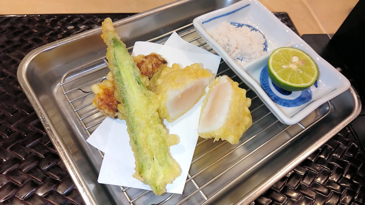 天ぷらと焼き物は基本娘さん担当。その腕前は大将の血を引いているだけあって確かなものです。