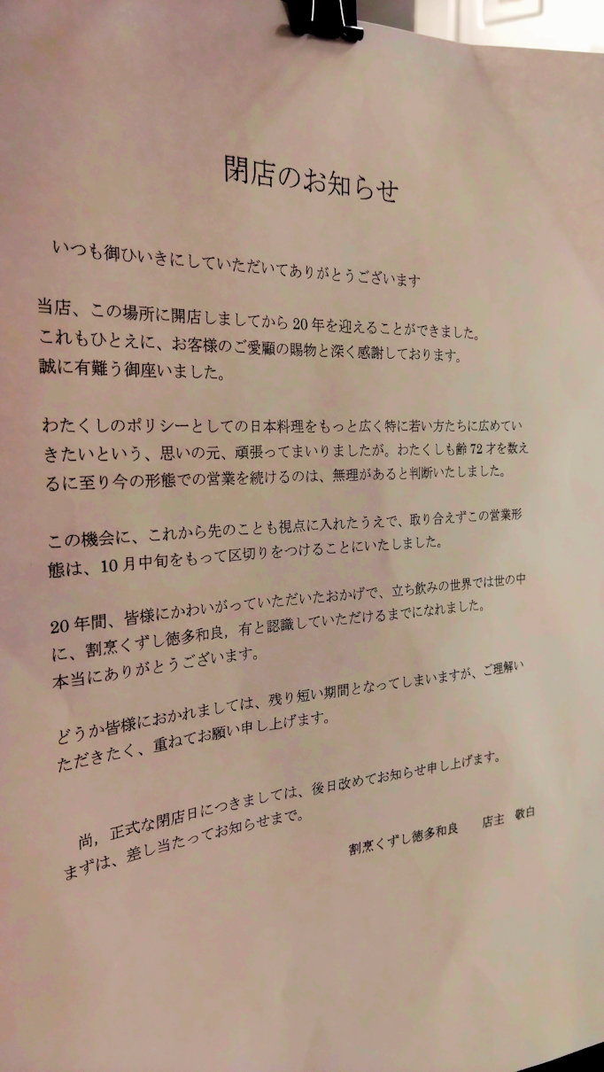 前回書いた通りでして閉店は10月中旬までと決まっていたのですが、私的にはもう1週先かなと思っていました。