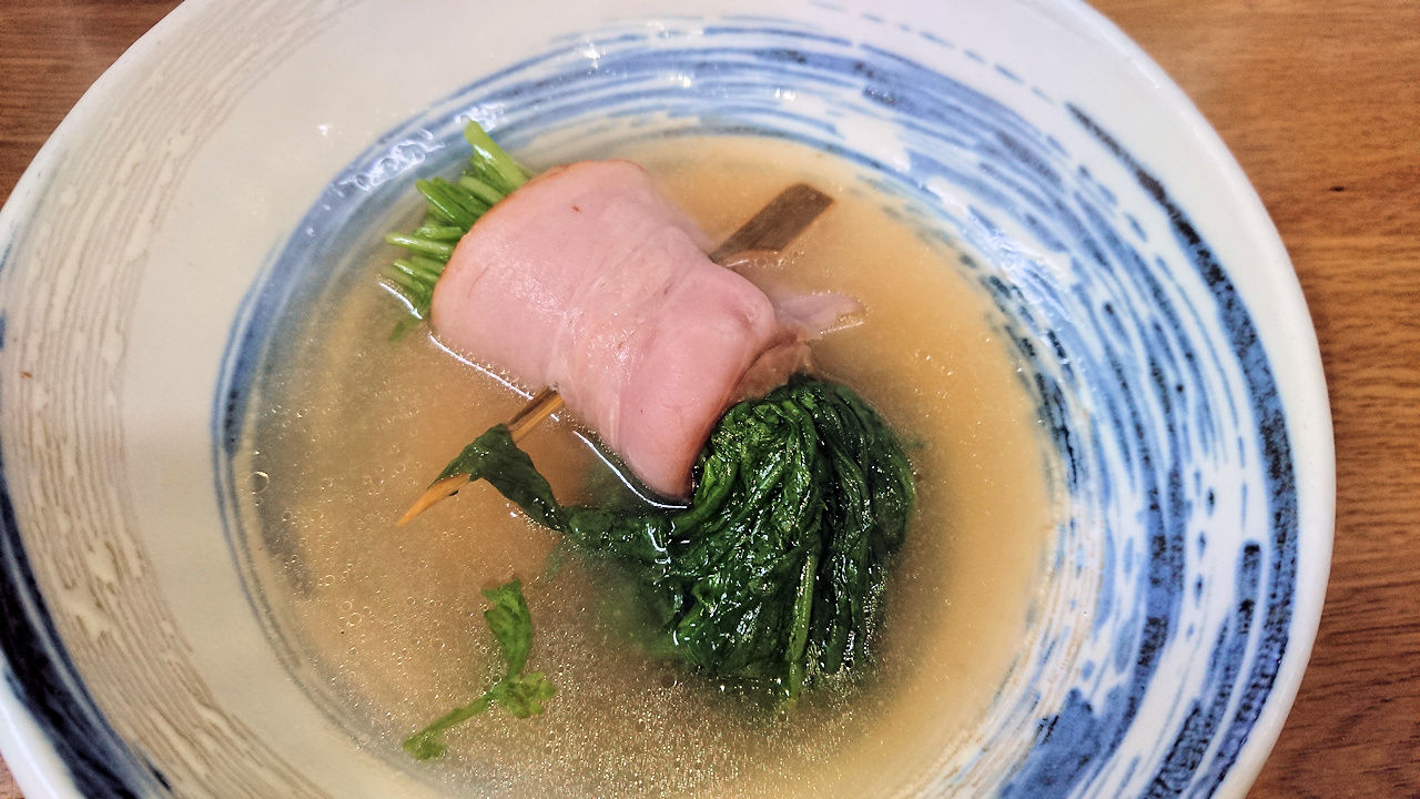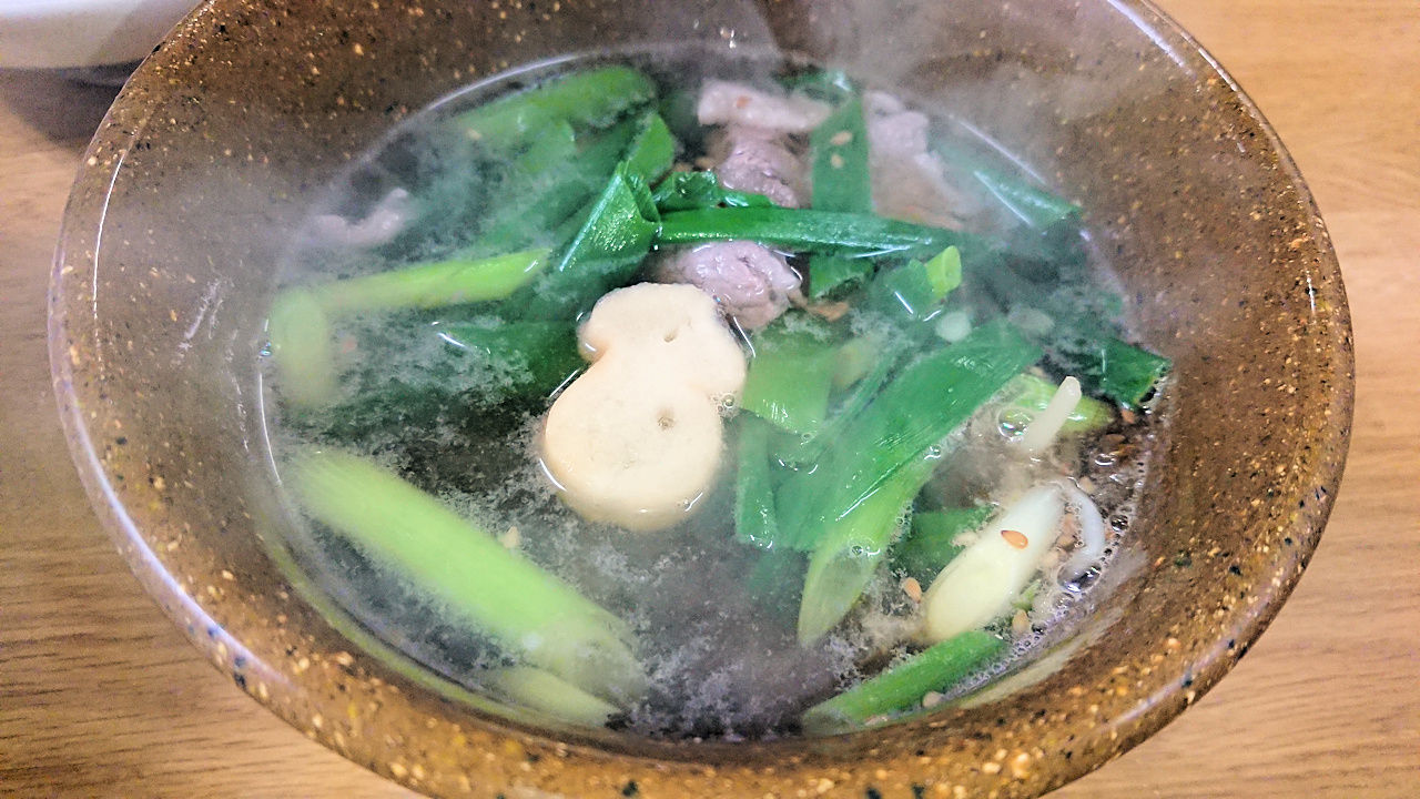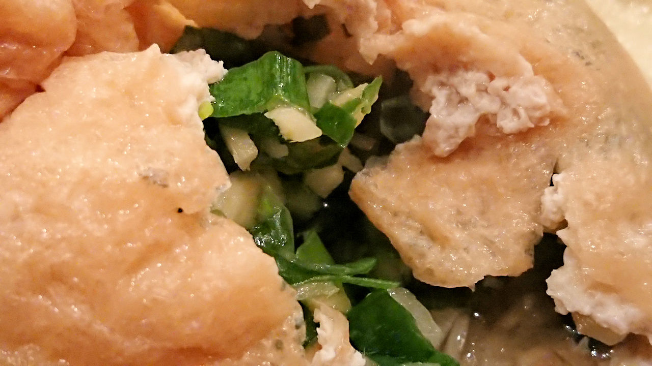 これもまた、相乗効果がよく出ていまして、ネギ独特の苦味を生姜の香りが和らげ、巾着そしてダシの四味一体攻撃で口の中に仕掛けてきます。