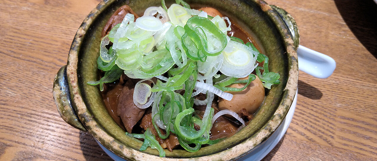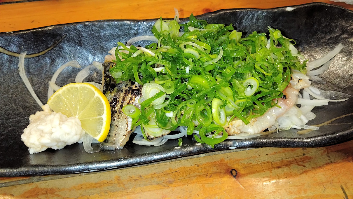 鳥取の漁港であがった鯖を使用しています。ネギがどっさり盛られているのでネギがメインに見えやすくなっていますが、下には脂がのっている鯖が結構入っています。