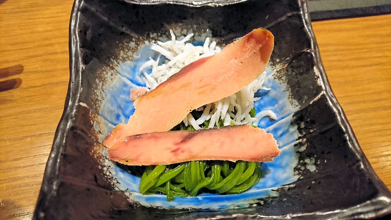鰹の腹の部分で、タタキ以上に火が通っています。小さめですが、しっかり存在感を出している一品。
