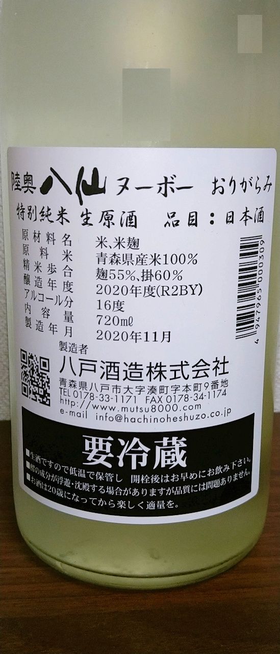 昨年冬に八戸酒造で2本購入したうちの2本目がこちら。