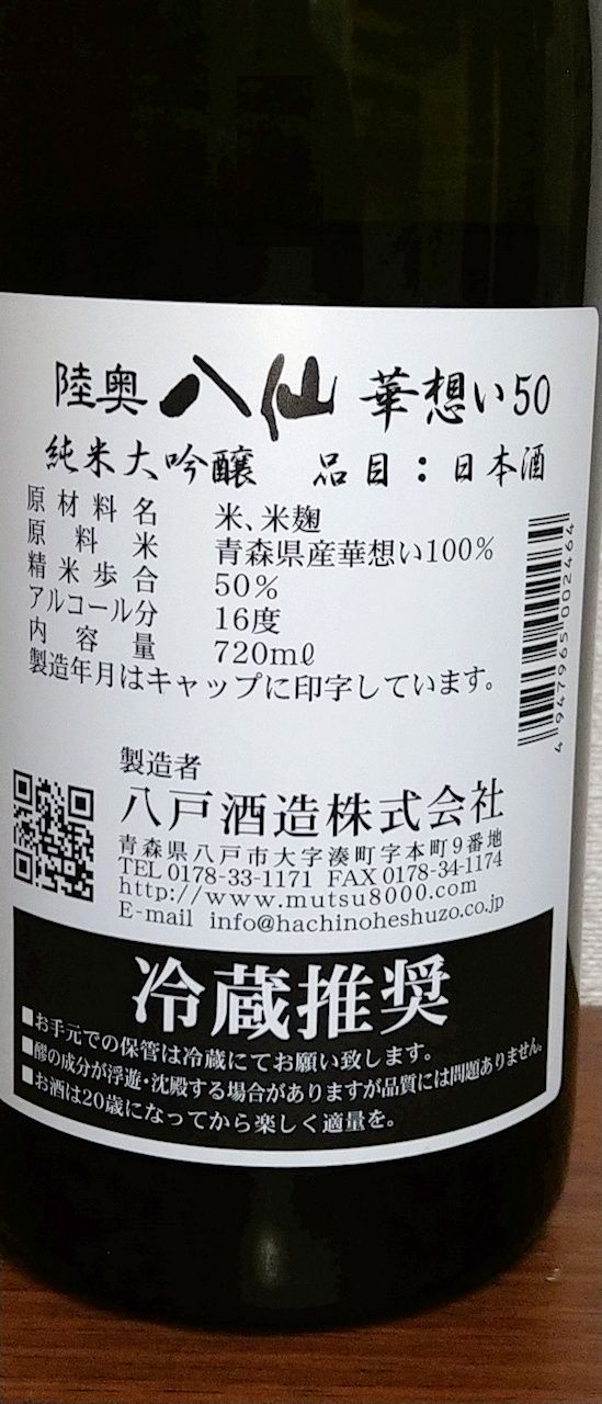 青森県の華想いを使用した純米大吟醸です。火入ですが要冷蔵というお酒。程よい甘みと香りに定評がある陸奥八仙ならではの純米大吟醸。価格的にも無茶苦茶高くないだけに、飲みごたえのあるお酒です。